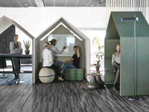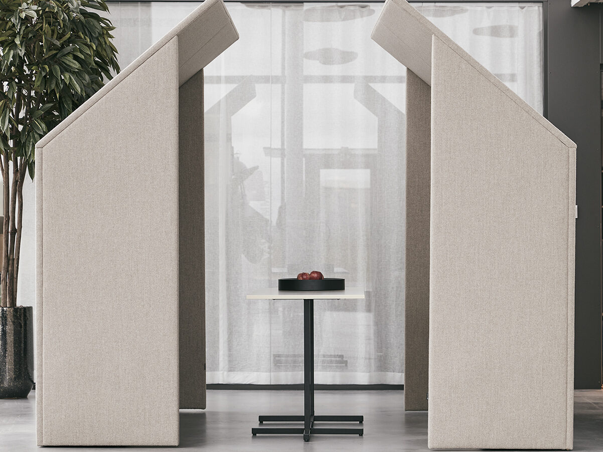 Husets helt enkle og rette linjer har inspiration fra det klassiske Matador-spil, og dets enkle og smukke lydabsorberende flader sørger for en helt tidløs form til det populære og praktiske ”rum-i-rummet”-koncept. The Hut kan benyttes til en lang række forskellige formål, som en individuel arbejdsstation, et lille møderum hvor du kan sidde eller stå, eller som et stille afslapningsområde kombineret med The Hut Sofa, hvor du kan lad roen fald på og fordybe dig…